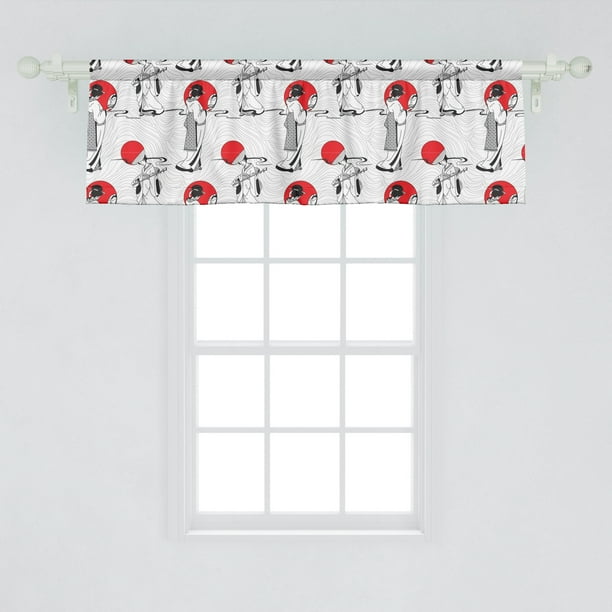 Ambesonne Asian Window Valance Japanese Geisha Girl With Traditional Kimono Folk Culture Style Curtain Valance For Kitchen Bedroom Decor With Rod Pocket 54 X 18 Black Red Walmart Com
